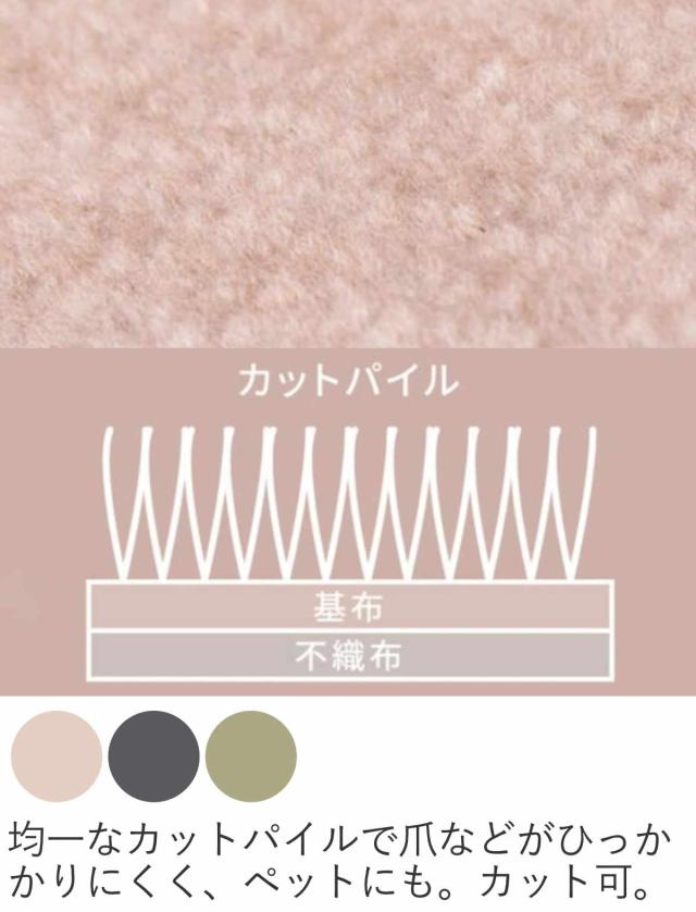 | お手入れ楽々 毛が短いループパイルなので、毎日のお手入れも簡単です。 | ほつれにくい縁 縁には、ほつれにくいロック加工が施されています。 |