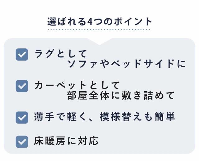 裏貼りがないことで、扱いやすく折り畳むことができます。また軽量なので、女性でも簡単に持ち運びができ、一人暮らしの方にもおすすめです。床暖房やホットカーペット、お掃除ロボにも対応しています。