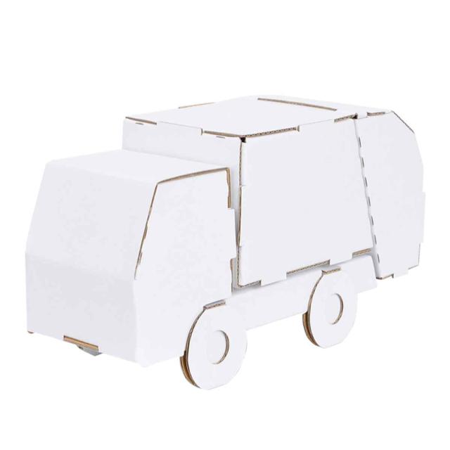 工作キット ダンボール製 hacomo kids のりもの ゴミ収集車 ( ダンボール 段ボール おもちゃ ペーパークラフト 工作 子ども キッズ 組み立て 手作り キット 組立 作る 簡単 リサイクル エコ 立体的 本格的 お絵描き 色塗り )