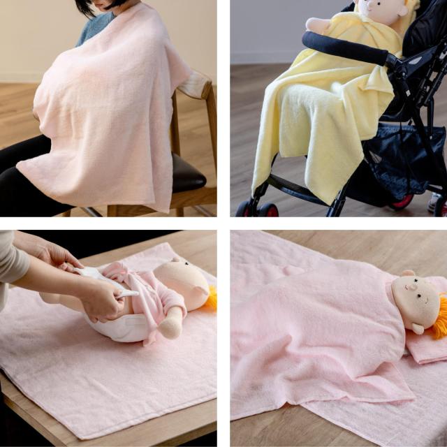 おくるみとしてだけでなく沐浴用のタオルとして、また授乳ケープ、ベビーカー使用時のブランケット、オムツ替え時のシート代わりやお昼寝のタオルケットとしてなど、赤ちゃんとの生活の様々な場面でお使いいただけます。お子さまが大きくなっても、普段使いのタオルとして長くご愛用いただけます。