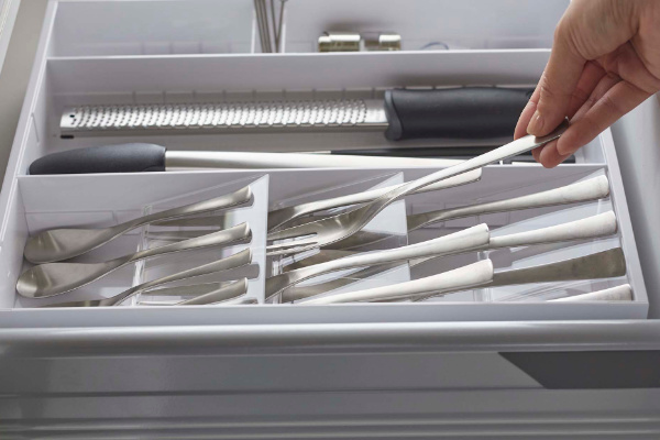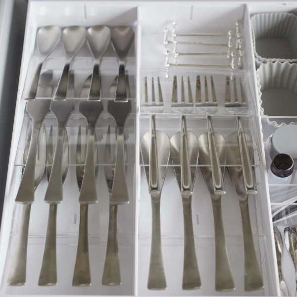 カトラリーを斜めに重なるように収納することで、出し入れしやすく省スペースに収納が可能です。