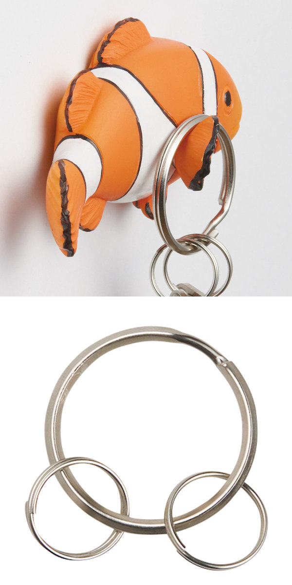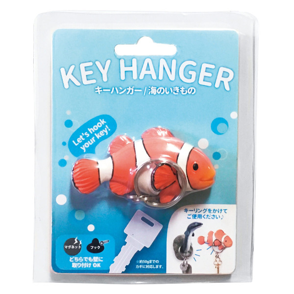 クマノミのヒレにキーを引っ掛けられるユニークなデザインのキーハンガーです。設置するだけで水族館を思い出して癒されそうです。
