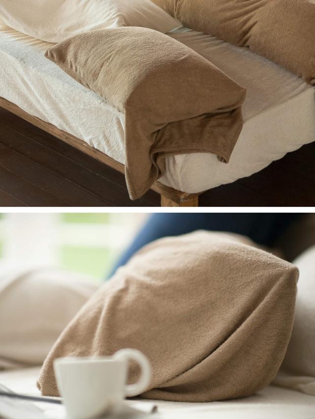 パイル部分(表面のループ状)に空気層ができることで汗を吸いやすく、お肌にやさしい弾力性に富んだふかふかしたさわり心地です。また、その空気層が壁となり冷たい外気を防ぐことで温かさを閉じ込める効果がありますので1年中快適にお使いいただけます。