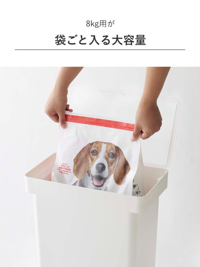 ペットフード約8kgの袋がスッポリ入る大容量サイズです。大型犬や多頭飼いされている方におすすめの大きさです。