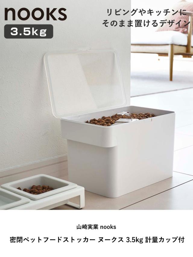 山崎実業 nooks 密閉ペットフードストッカー ヌークス 3.5kg 計量カップ付 ( 4903208056113 ペットフード ストッカー ペット フード 密閉 保存 容器 ドッグフード キャットフード エサ入れ ケース ペット用品 ブラック ホワイト )