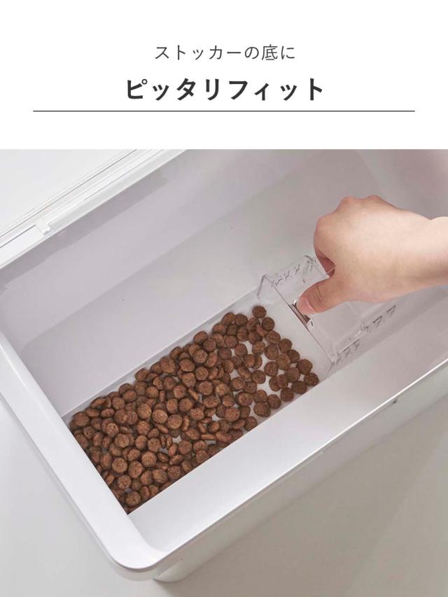 付属の計量カップはストッカーの中に入れておけるので、いつでも必要な量のペットフードが取り出せます。