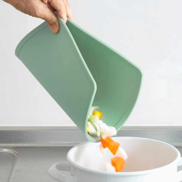 折り曲げて使えるので、切った食材をそのまま鍋に入れることができます。軽いので洗う時や収納するときも扱いやすいです。