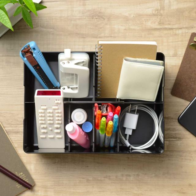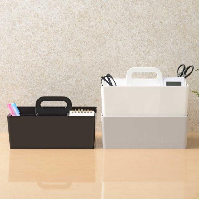 卓上 収納ケース デスクトート ( 収納 デスク 机 デスクオーガナイザー ペン立て デスク収納 卓上収納 スマホ スタンド 仕切り 持ち手付き スタッキング リモコン ケース 小物収納 収納ボックス 積み重ね メイク 文房具 日本製 )