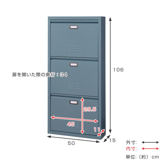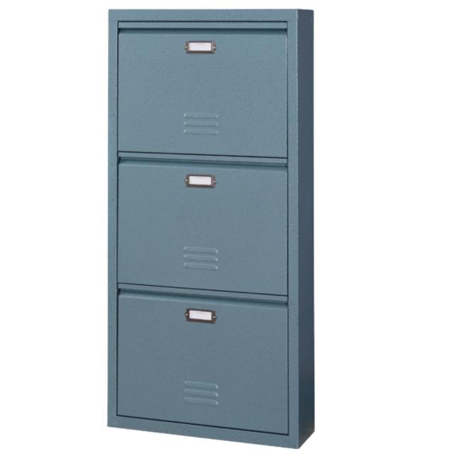 シューズラック 3段 RALD グリーン 幅50cm ( ラルド スリム シューズケース シューズボックス 下駄箱 靴収納 靴箱 ラック ロッカー風 収納 玄関収納 収納棚 靴 靴入れ 雑誌 本 棚 玄関 フラップ扉 コンパクト 薄型 )