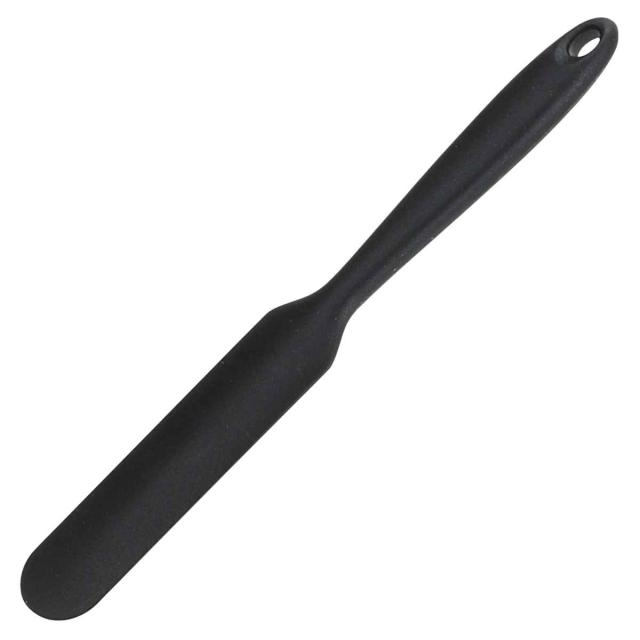 やわらかいシリコン素材の中心には、ナイロン素材の芯が入っているので、やわらかくてもしっかりこしのある使い心地です。 幅2.5cmの細身のスパチュラなので、チョッパーのみじん切り材料など、細かい食材も残さずすくうことができます。また。ジャムなどの小さい容器から移したり、生地ならしやフルーツなどのうらごしにもグッと力が入り使いやすいです。お菓子からお料理まで幅広く大活躍します。
