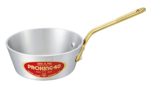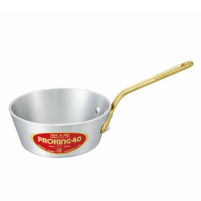 極厚4.0mmアルミ材を使用した片手鍋です。厚板なので蓄熱性が高く、熱コントロールに優れているので、思い通りの調理が実現します。底が狭く上部が広くなっているテーパータイプなので、スープやソース作りに活躍します。