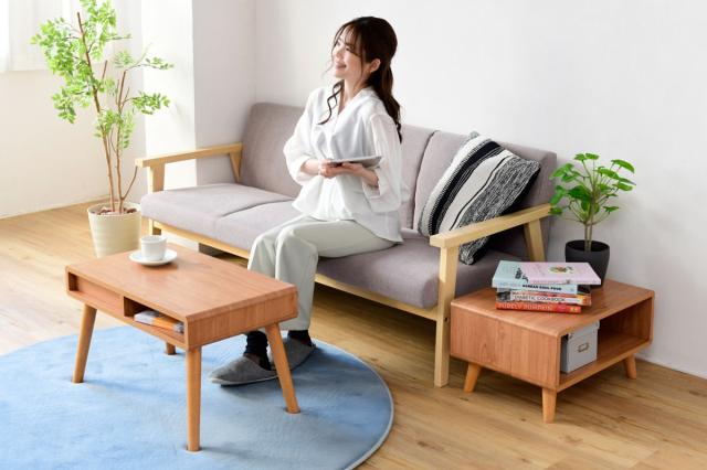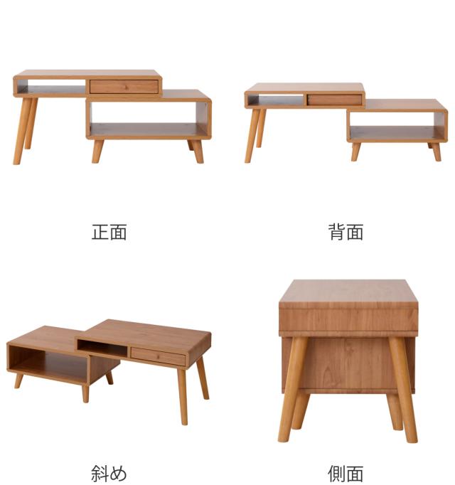 付属の脚を使用すればローテーブルとサイドテーブルとして、分割して使用できるのでリビングや寝室などでも活躍します。