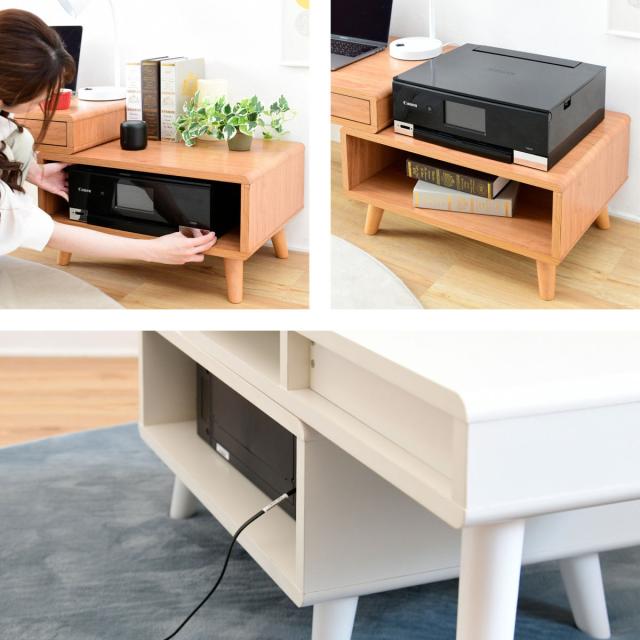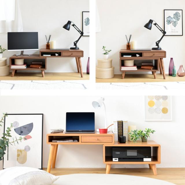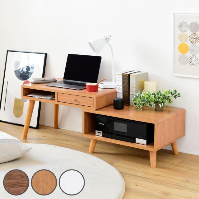 ローデスク 伸縮タイプ プリンター収納 Pico 幅65〜110cm ( テレビ台 サイドテーブル リビングテーブル デスク PCデスク 収納 2Way コンパクト 引き出し付き シンプル 北欧 木目 木製 ブラウン ナチュラル ホワイト )