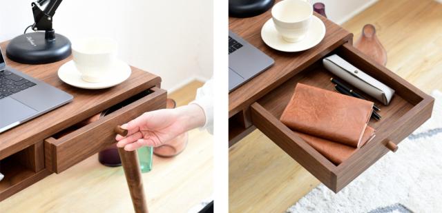 小物の整理に便利な浅型の引出し付きです。文房具やタブレットなどの収納にもぴったりです。