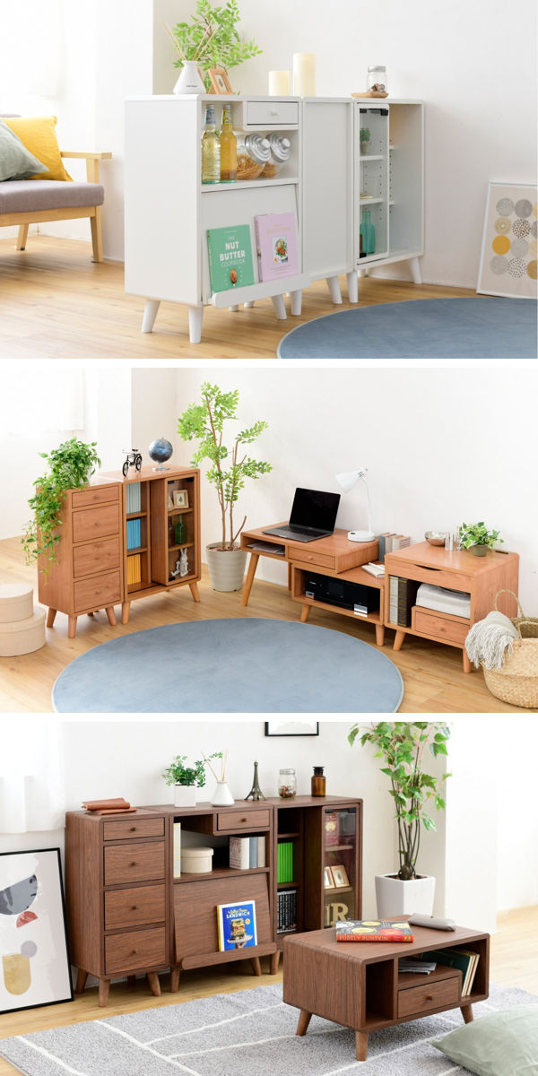 「収納するモノ」から考えて設計されたデザインなので、コンパクトでも収納力や機能性は抜群です。背面化粧仕上げなのでシリーズ商品と並べてお部屋の間仕切りにもお使いいただけます。ライフスタイルに合わせて単品または組み合わせてお使いいただけます。