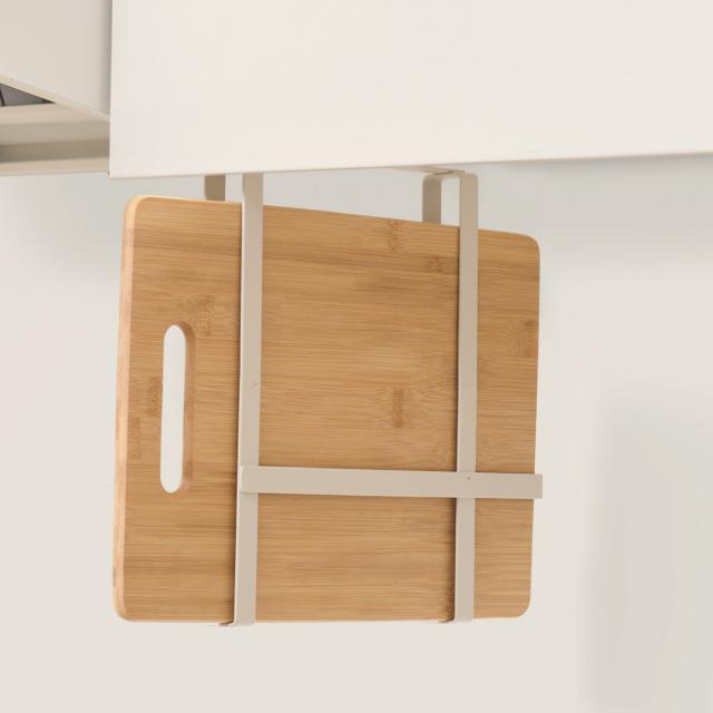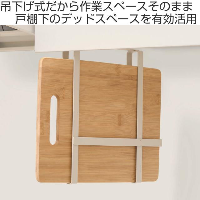 棚から吊り下げられるので、調理スペースの邪魔にならず、使いたい時にさっと手に取れ省スペースでまな板を収納できます。立てて収納できるので、横置きで収納する場合に比べて水切れが良いのも嬉しいポイントです。