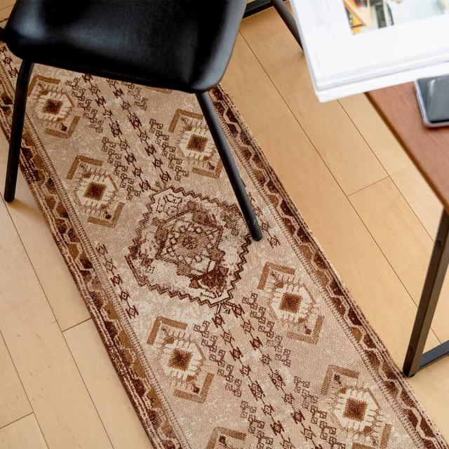《 LH8984 45cm 140cm 床暖房 使える 可能 可 使用可能 使用可 リビング インテリアマット キッチン 廊下 縁側 オールシーズン使える オールシーズン対応 1年中使える室内マット 屋内マット 多目的マット 長方形マット フローリング おすすめ オススメ ブラウン 茶 オリエンタル柄 》