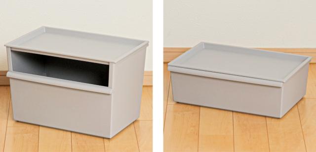 収納ボックス(別売り)にフタをすれば、ボックスの中にホコリが入りにくくなります。フタの上にも物を置くことができて収納力がアップします。