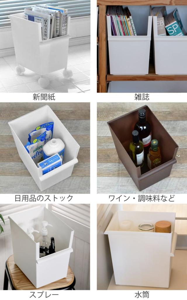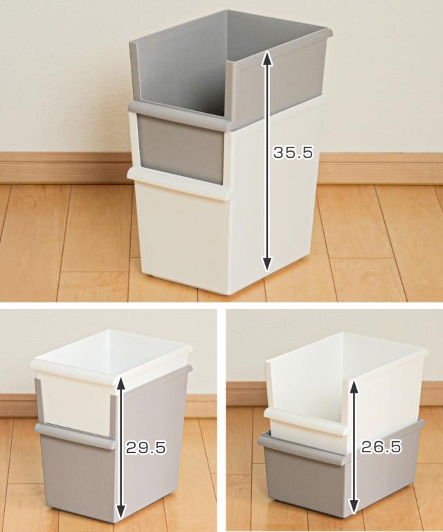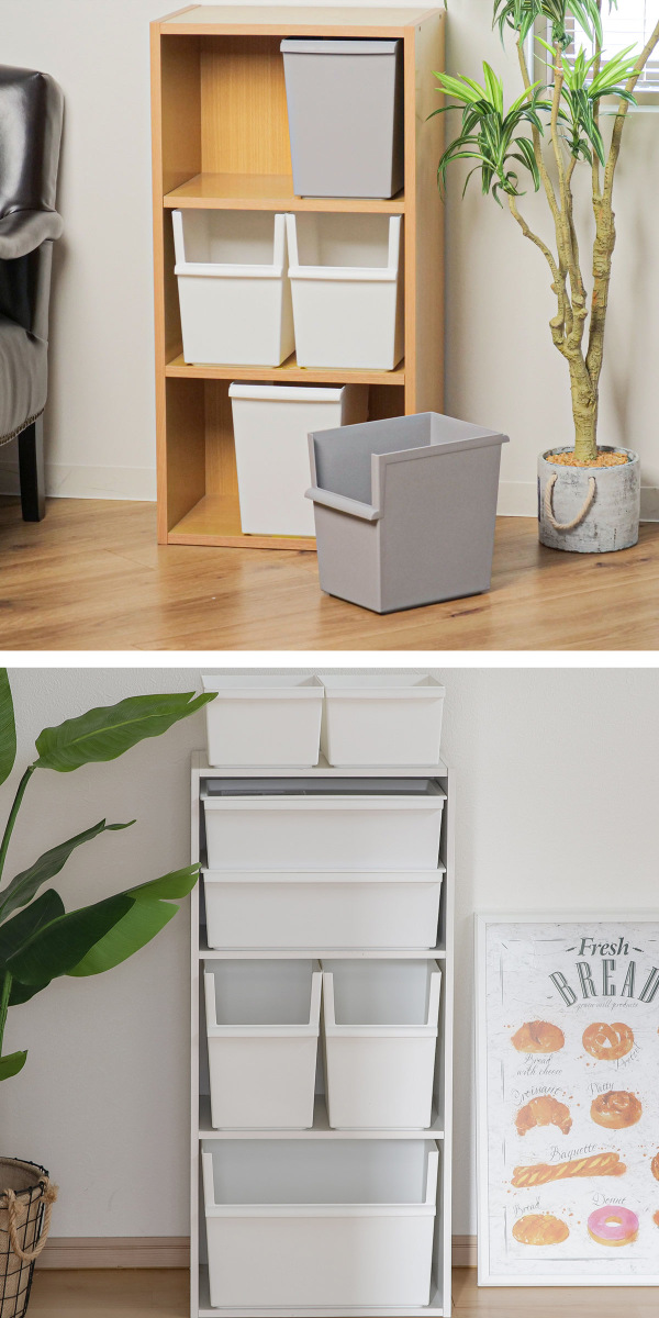 フタ(別売り)をすると同シリーズでスタッキングできます。棚が無い場合でも収納場所を作れます。