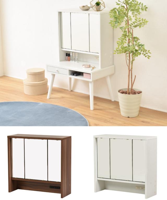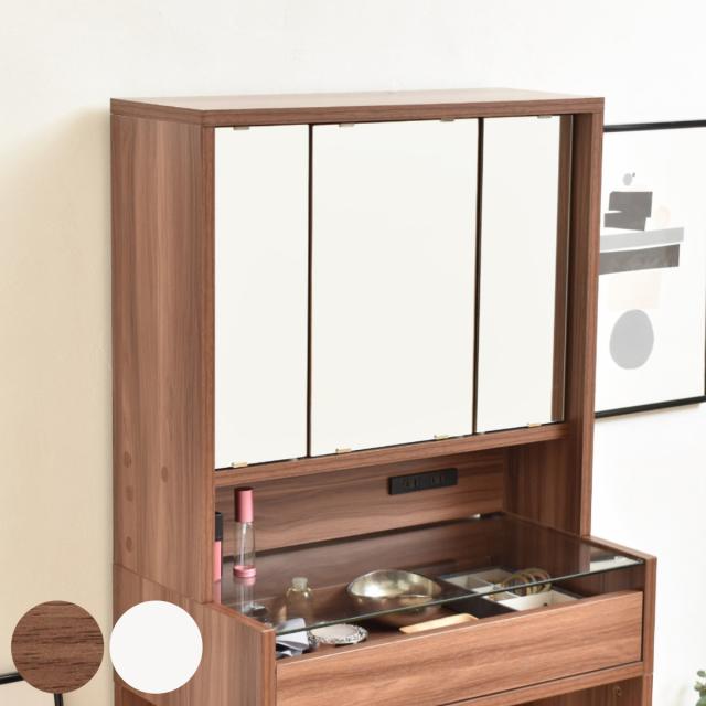 三面鏡 鏡のみ 卓上ミラー 幅60cm ドレッサー ( 単品 デスクなし 大型 卓上 大きい ミラー 鏡 木目調 鏡裏 収納付き 卓上ドレッサー メイク収納 可動棚 コンセント付き おしゃれ 白 ブラウン )