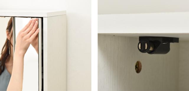 扉にはマグネットラッチを採用しています。押すだけで簡単に開き、閉じるとカチッと止まるので安心です。