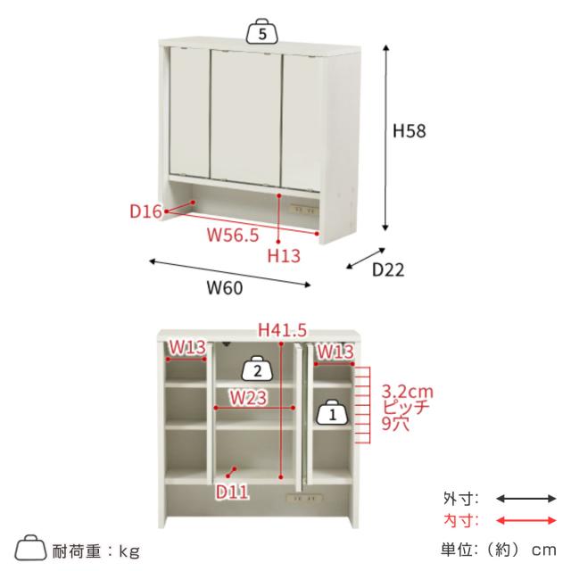 | サイズ | 約 幅60×奥行22×高さ58(cm) |
