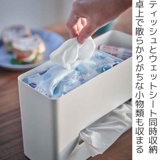 RIN ティッシュ&ウェットシートケース リン ( 山崎実業 ティッシュケース ティッシュ&ウェットティッシュケース おしゃれ 北欧 ティッシュボックス ティッシュカバー 収納 スリム ふた付き ウェットティッシュ ケース ティッシュケース おしゃれ)
