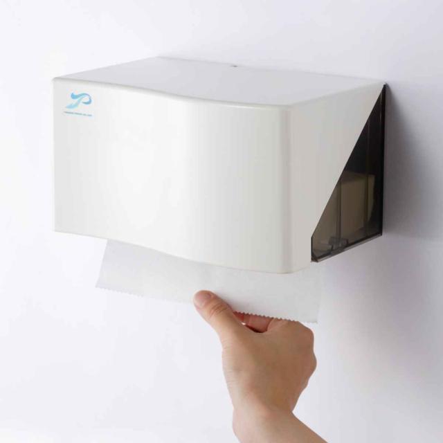 ペーパータオルは約200枚収納することができます。本体の底の部分から引き出すので濡れた手で取り出しても、次のペーパータオルに水が付くことを大幅に軽減します。