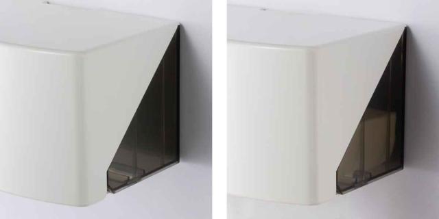 側面はスモーク状の小窓になっており、ペーパータオルの残量が一目で確認できます。開閉して残量を確認する手間が省けて大変便利です。