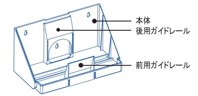 エコノミーサイズのペーパータオルのご使用のときは上図のように前用・後用ガイドレールを本体の前後に設けられた取付穴に嵌め込んでご使用ください。