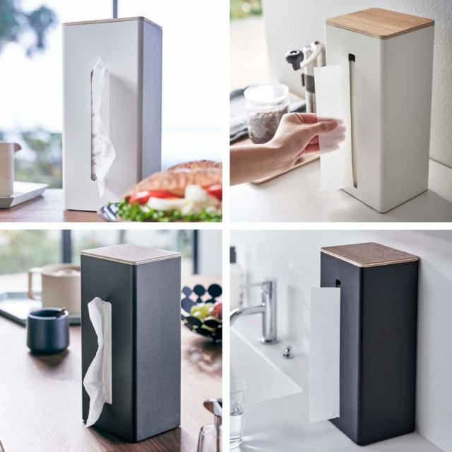 RIN 両面ティッシュケース縦型 リン ( 山崎実業 ティッシュケース おしゃれ 北欧 ナチュラル スチール 卓上 ティッシュカバー ティッシュボックスケース 箱ティッシュ キッチンペーパー ペーパータオル ケース キッチン ティッシュケース おしゃれ)