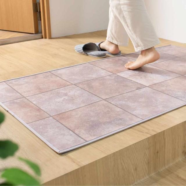 毛足のないサラサラな表面が特徴のマットはサラっとしていて、べたつかないタイプです。裸足でも快適に、靴下でも滑りにくく簡単にお手入れが出来るので毎日気持ちよく過ごせます。