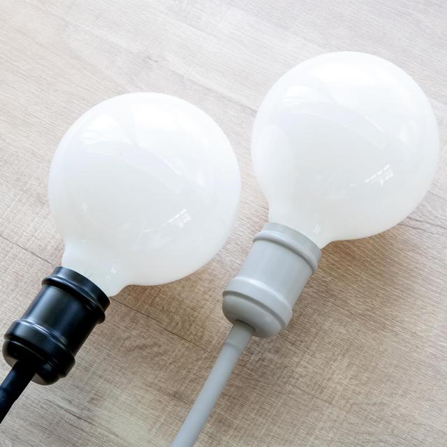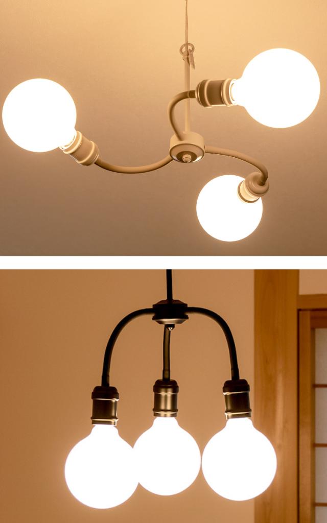 大きめサイズの電球はコロンと可愛らしく、取り付けるだけでどこかレトロな佇まいを感じさせます。