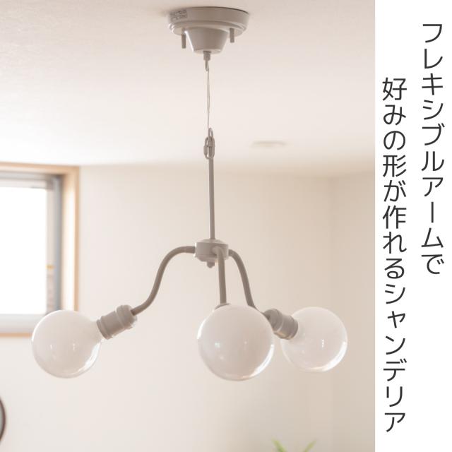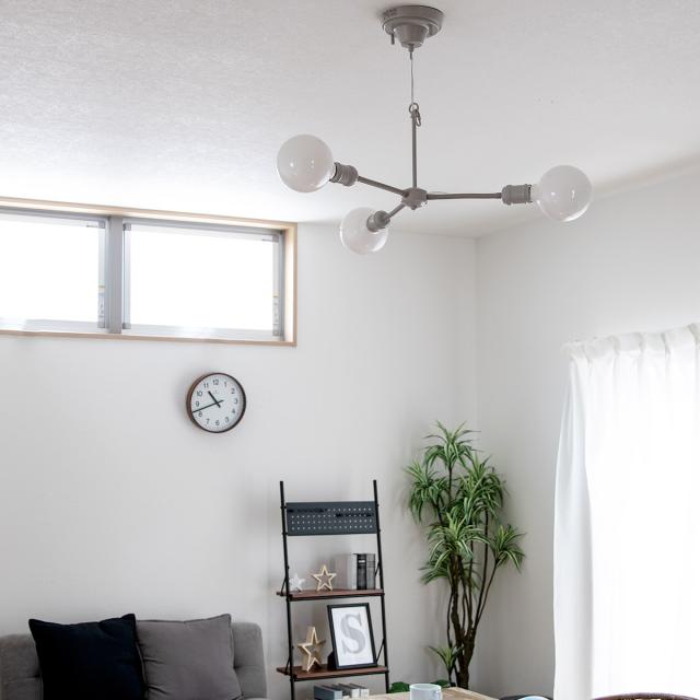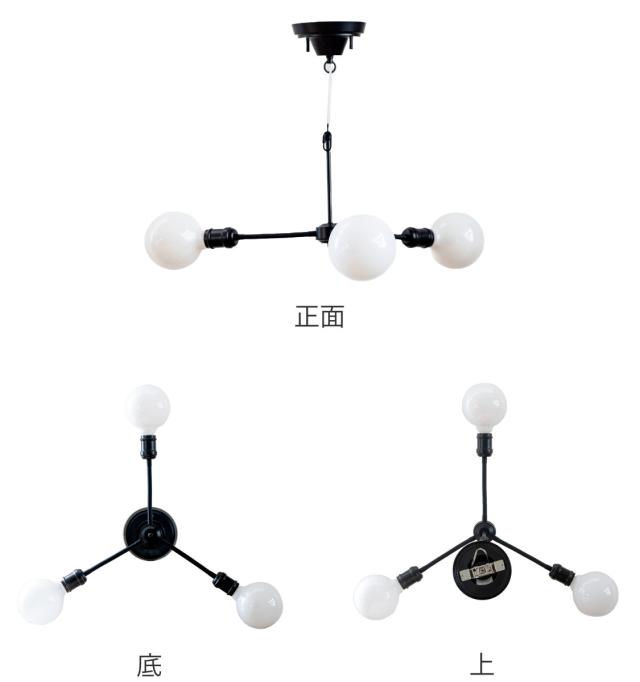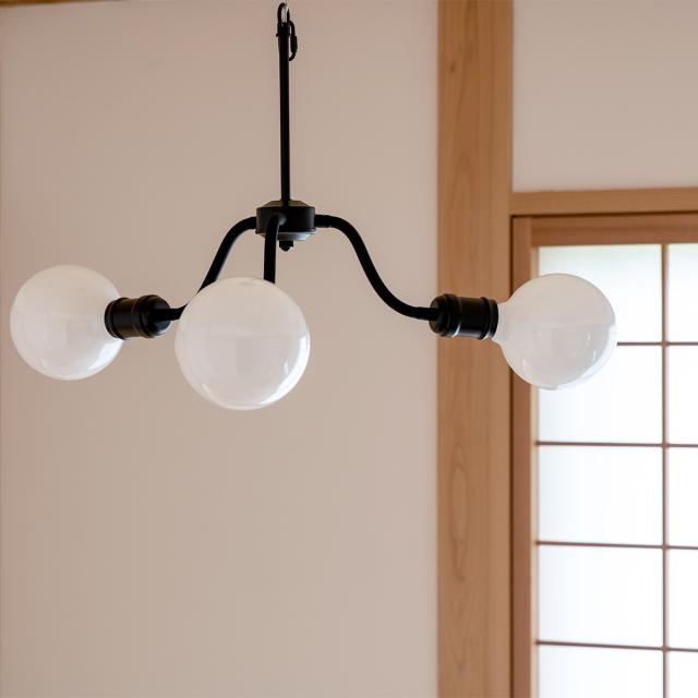 ベーシックなデザインのナチュラルインダストリアルをイメージした3灯シャンデリアです。存在感抜群のまるくて大きめの電球とソケットだけのミニマルデザインに仕上げました。