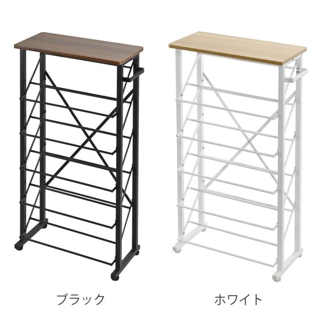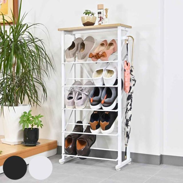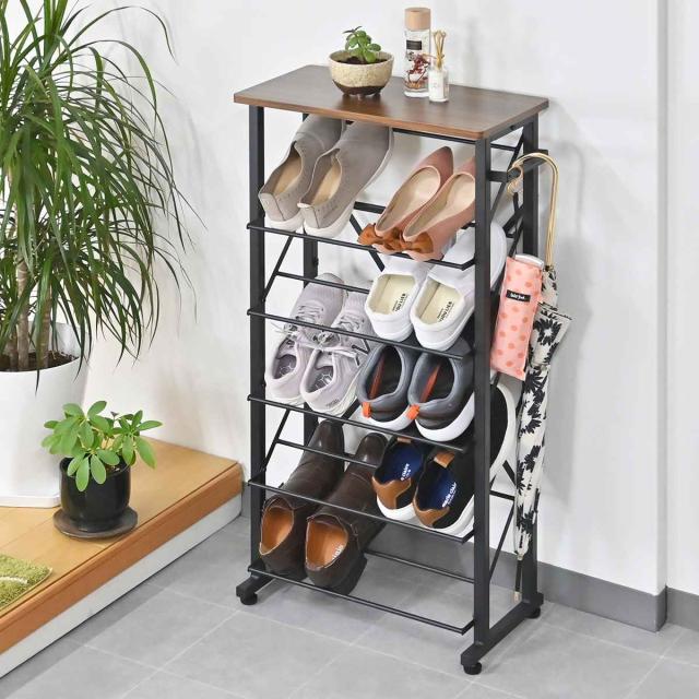 シューズラック 幅50.5cm 5段 スリムタイプ ( 靴 収納 下駄箱 スリム 奥行25 シューズ ラック 省スペース おしゃれ 玄関 玄関収納 棚 最大 10足収納 サイドバー 付き 傘収納 天板付き 木目調 PVC ブラック ホワイト )