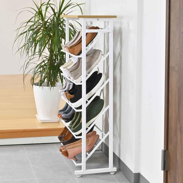 メンズシューズからパンプスまで最大10足収納することができます。片手でサッと収納できるので玄関に散らかりがちなサンダルや靴の一時置き場としても使えます。