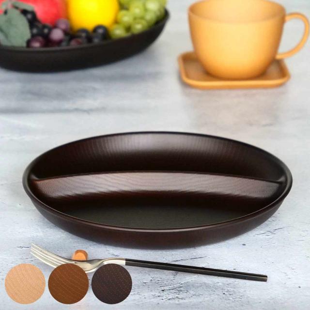 ランチプレート 24cm Nhhome 木目調 プラスチック ( 食洗機対応 電子レンジ対応 仕切り皿 ランチ皿 ワンプレート 丸 防汚性 撥水性 軽い 割れにくい クリーンコート機能 ナチュラル お皿 皿 仕切り 丸型 )