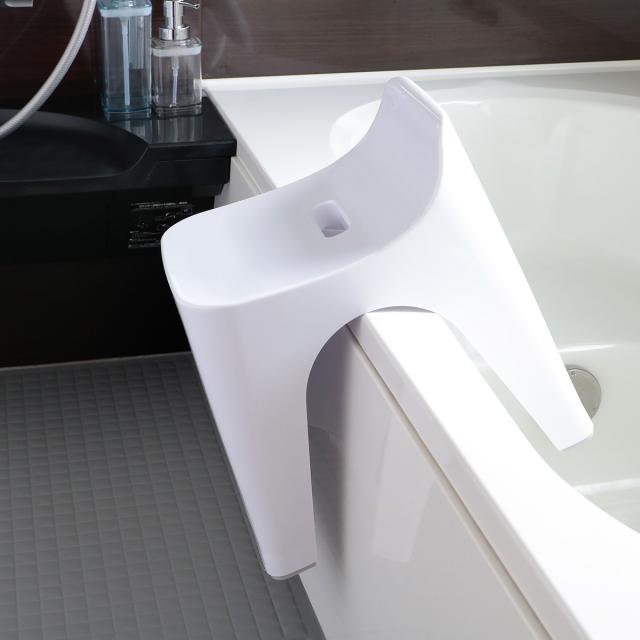 大きく開いたアーチ型の開口部は通気性をしっかりと確保し、湿気がこもりにくい構造です。浴槽に掛けて乾燥&収納ができ、効率的に水垢やカビの発生を抑えます。