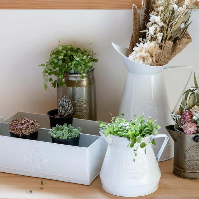 《 LH10803 ガーデニング エクステリア 園芸用品 玄関 お部屋 室内 おしゃれ オシャレ インテリア雑貨 コンパクト エアプランツ 造花 フェイク グリーン フラワー ガーデン ガーデンインテリア おうち時間 おすすめ オススメ スタッキング オーナメント ブリキ シルバー ホワイト 銀 白 ジャー 型 》