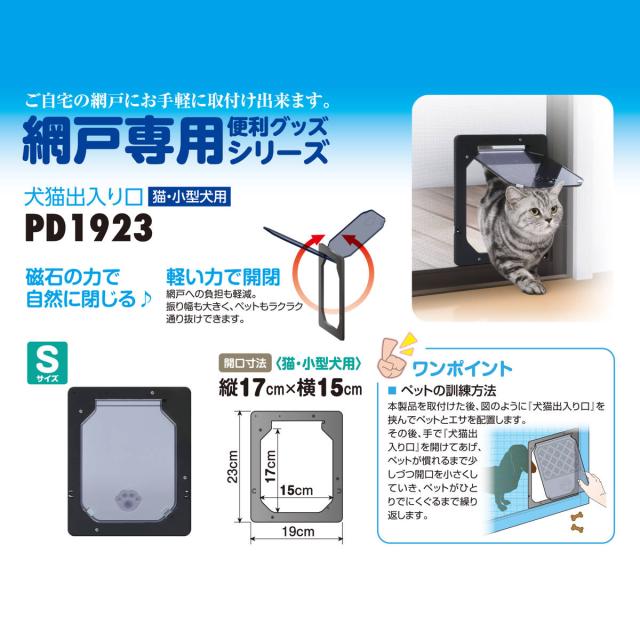 網戸専用 犬猫出入口 猫・小型犬用 Sサイズ ( ペットドア キャットドア 網戸用 出入り口 猫 犬 ペット 小型犬 取り付け 簡単 後付け 入口 出口 ドア 扉 磁石 便利 ペットグッズ ペット用品 )