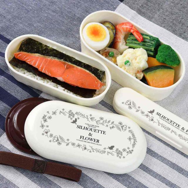 弁当箱 Potter 2段ランチボックス 640ml シルエットフラワー ( お弁当箱 ランチボックス レンジ対応 二段 ドーム型 女子 花 レンジOK お弁当 弁当 入れ子式 ランチベルト付き 防汚加工 二段弁当箱 女性 花柄 )
