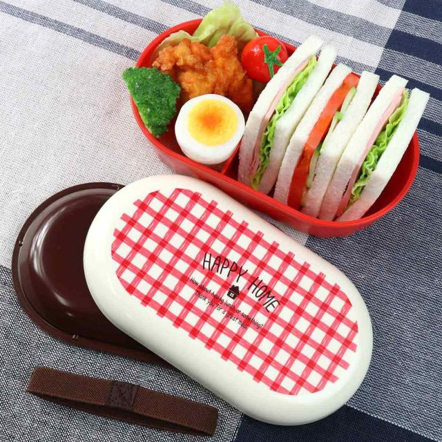 弁当箱 1段ランチボックス 600ml ハッピーホーム レッド ( お弁当箱 ランチボックス レンジ対応 一段 ドーム型 女子 チェック柄 レンジOK お弁当 弁当 仕切り付き ランチベルト付き 防汚加工 一段弁当箱 女性 )