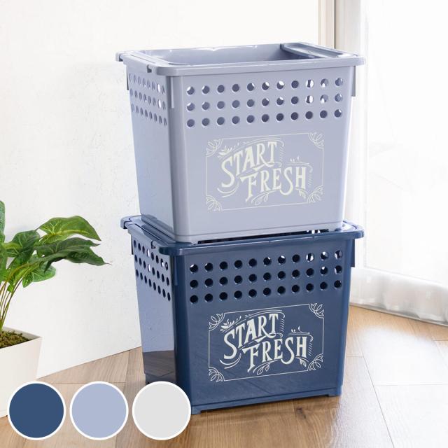 収納バスケット スタッキングバスケット 深型 幅42×奥行32×高さ34cm ( バスケット 収納 プラスチック 収納ケース 積み重ね 入れ子 小物入れ 日本製 大容量 クローゼット キッチン 洗面所 おもちゃ箱 ランドリー ケース ボックス )
