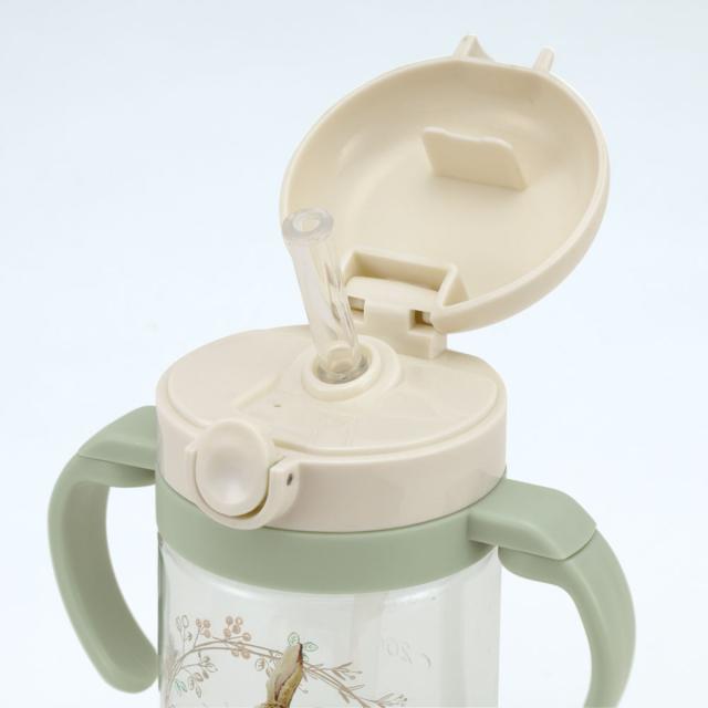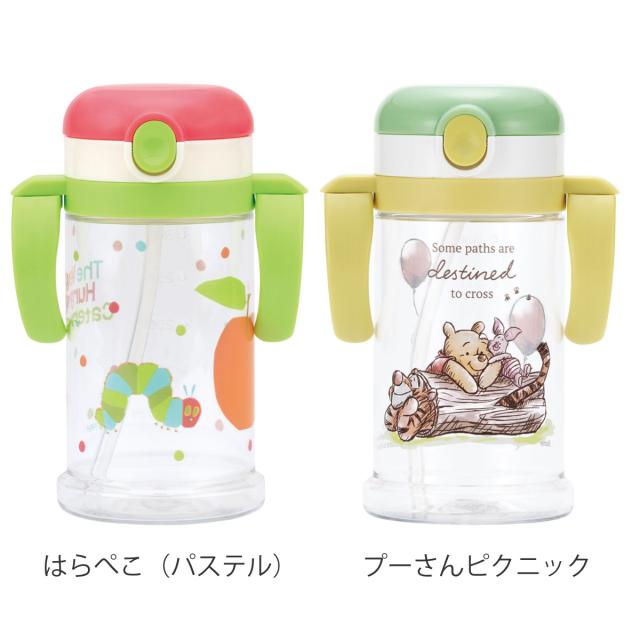 小さなお子様がストローで飲む練習ができるストローマグです。ボタンを押すとワンタッチで開閉できるので衛生的です。割れにくく透明度の高いPET素材を使用しています。可愛いキャラクターと一緒なので食事の時間がより楽しくなりそうです。