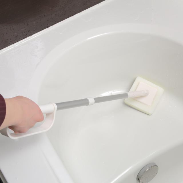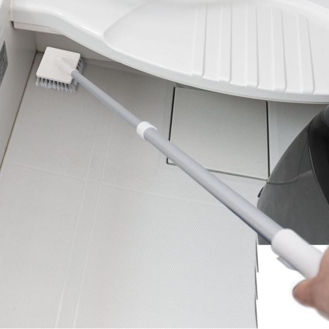 伸縮式の柄を伸ばせば、浴槽の底や浴室の壁も楽な姿勢でお掃除できます。屈んだり背伸びをしたりしなくても届くので、滑りやすい浴室掃除も安全です。