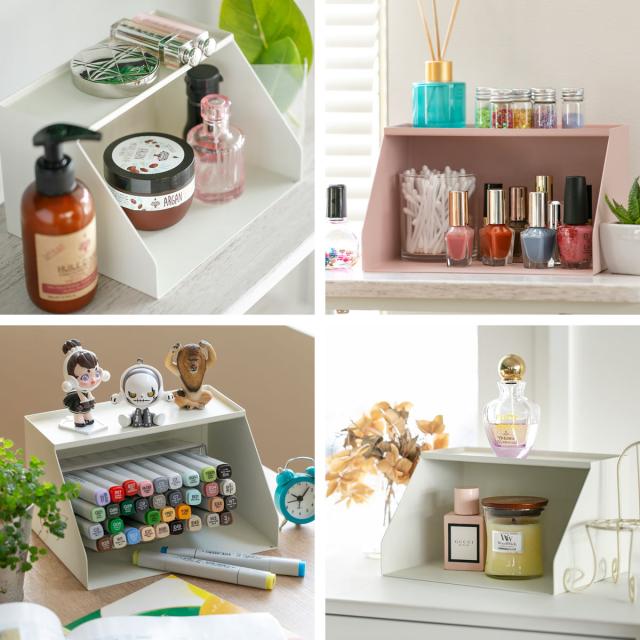 キッチン周りで使用するのはもちろん、他にも様々な場所でも活躍してくれます。コーヒーや紅茶、砂糖を収納してカフェコーナーに、コスメやネイル用品、香水を収納してドレッサー回りに、推しのフィギュアやキャンドルを収納してインテリアとしてなど、お好みに合わせて色々な使い方をお楽しみいただけます。