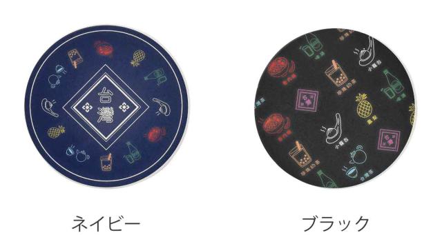 台湾の雰囲気が漂う「台湾ネオン」シリーズの吸水コースターです。表面の素材はセラミックが使われており、コップの結露などを吸水します。また、裏面にはすべりにくいコルクを使用しています。カラフルな色使いで、台湾の食べ物モチーフがあしらわれた、アジアンチックなオシャレさが魅力のデザインです。