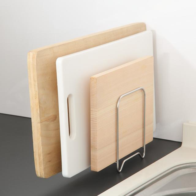 まな板を省スペースで収納できるまな板立スタンドです。あまりスペースを取らずにまな板を収納できるので、作業スペースが広く使えて料理がはかどります。耐久性に優れたステンレス性で変形しにくく、サビにくい特長もあるのでお手入れが簡単で長く愛用していただけます。