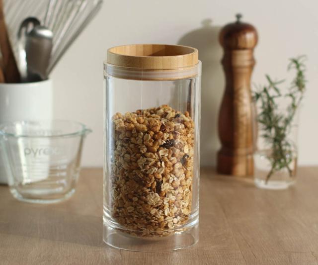 容量は1250mlと大きめサイズ。キッチンでショートパスタやお菓子などの保存はもちろん、粉洗剤やボール型洗剤などを入れる容器としてランドリー周りで使うのもおすすめです。