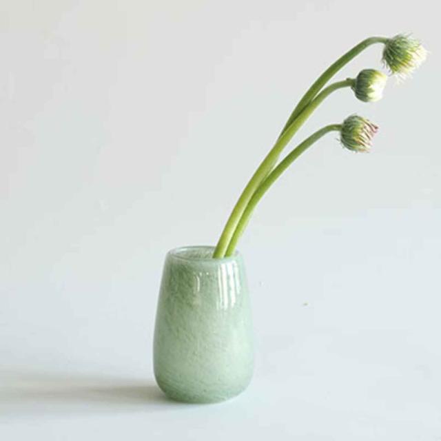 「DGシリーズ」はマウスブローと手仕上げで一点一点、手作業で作られています。生花やドライフラワー、植物と合わせやすい、飽きのこない機能的なデザインです。